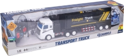 Szórakoztató, 41 cm hosszú távirányítós kamion elegáns fekete színben. 27 MHz-es frekvenciat, fényhatásokat és 3,7 V-os akkumulátort kínál, a csomagban USB-kábellel; az 2× AA elem a vezérlőhöz nem része a csomagnak.