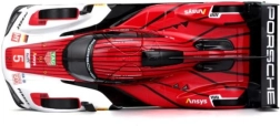A piros–fehér fényezés 5-ös számmal és szponzorlogókkal hűen tükrözi a valódi PORSCHE 963 versenygépet.