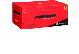 Látványos doboz FERRARI és BBURAGO logókkal, amely védi a modellt, és kiállításhoz vagy ajándékozáshoz is tökéletes.