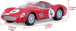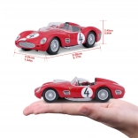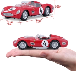 A modell minőségi die-cast fémből készült, műanyag kiegészítőkkel a finom részletekhez. A hű karosszérianak, a kidolgozott belső térnek és a kerekek sima futásának köszönhetően remekül mutat és jól gurul sík felületen. A csomag eredeti Ferrari Racing dobozt is tartalmaz a biztonságos tároláshoz és kiállításhoz.