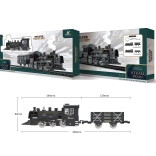 Szerezzen örömöt a gyerekeknek egy valósághű vasúti készlettel, 75 × 75 cm méretű pályával. A 19,5 cm hosszú mozdony és a 15,5 cm-es vagon fény-, hang- és füsthatásokat kínál, amelyek fokozzák az élményt. Az egyszerű vezérlést a mozdony bal oldalán található ON/OFF kapcsoló biztosítja. Remek választás otthoni szórakozáshoz és ajándéknak a kis vasútrajongóknak.