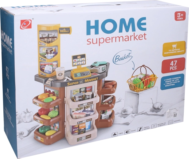 Változtasd a gyerekszobát igazi bolttá! A 53 × 34 × 79 cm-es gyerek szupermarket a fény- és hangeffekteknek, valamint a széleskörű tartozékoknak köszönhetően valósághű eladó–vásárló játékélményt nyújt. A gyerekek miközben remekül szórakoznak, gyakorolják a finommotorikát, a számolást és a szociális készségeket.