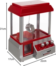 REALISZTIKUS CUKORKAFOGÓ GÉP- A "Candy Catching" ügyességi játék egykultikus nyerőautomaták által ihletett játék cukorkafogáshoz, amelyekkel gyakran találkozhatunk tengerparti sétányokon és vidámparkokban. Úgy tervezték3 évesnél idősebb gyermekek számára, és tökéletes attrakció, amely izgalmas szórakozásba vonja be a kicsiket. A játék fő részeegy nagy, átlátszó tartálymagas minőségű ABS-ből készült,amelybea finomságokat a hátul elhelyezett kör alakú nyíláson keresztül dobjuk be.A bal oldalonegy továbbifedeles nyílás található, amely megakadályozza a cukorkák véletlen kiesését.A tetőformájú kialakítás elrejti a karmok mechanizmusát, amelyet a gyerekek joystickokkal kezelhetnek, és négy irányba mozgathatnak.