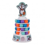 Építs stabil tornyot, tegyél minden szintre 9 színes golyót, illeszd rá a peremgyűrűt, és helyezd a tetejére a kupolát pingvinnel. A játékosok felváltva megpörgetik a rulettet, és a kijött szín szerint pálcikákkal húzzák ki a golyókat úgy, hogy a torony ne dőljön össze. A golyók belül lepotyognak, és a talp nyílásán távoznak – a feszültség minden húzással nő!