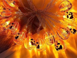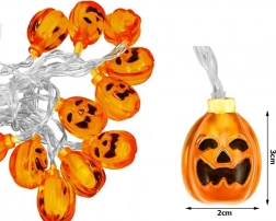 Látványos fényfüzér 10 LED-del narancssárga műanyag tökökben – ideális ablakok, ajtók, kandalló, polcok, erkély vagy gyerekszoba díszítéséhez. Az állandó fény és a biztonságos 2× AA elemes működés (nem tartozék) kényelmes használatot biztosít vezetékek nélkül.