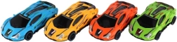 Minden autó kompakt, 16 × 8 × 4 cm-es méretű, ami jól illeszkedik a kézbe. A készlet négy vonzó színt tartalmaz (kék, sárga, narancssárga, zöld), így a gyerekek saját versenyeket rendezhetnek és gyűjteményt építhetnek.