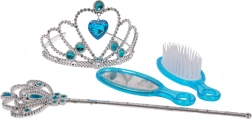 Engedd ragyogni a gyermeki fantáziát az elegáns, kék kivitelű kis hercegnő szettel. A csillogó kövekkel díszített tiara és pálca királyi hangulatot ad minden jelmeznek, míg a tükör és a kefe a kis királynő tökéletes megjelenéséről gondoskodik.