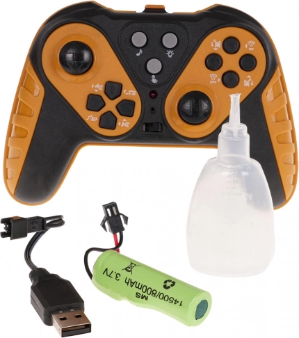 A markoló áramforrása egy 3,7 V 800 mAh akkumulátor (tartozék), míg a távirányítóhoz 2 darab AA elem (nem tartozék) szükséges. A csomag tartalmaz egy USB töltőkábelt és egy műanyag pipettát a füsthatásokhoz.
