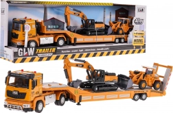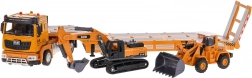 Interaktív építőipari járművek utánfutóval 3 éves kortól, fém és műanyag kombinációja a maximális tartósságért. A járművek, melyek vontatóból, kotrógépből és rakodógépből állnak, fény és hanghatásokat kínálnak, ezzel hozzájárulva a valósághű játékhoz.
