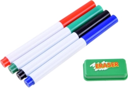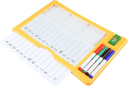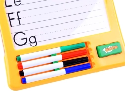 A készlethez tartoznak speciális filctollak, amelyeket könnyedén le lehet törölni – ideálisak kreatív és ismételt íráshoz. A termék egyaránt alkalmas otthoni és óvodai használatra, és olyan gyerekek számára készült, akik éppen írni tanulnak.