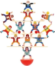 Építs stabil tornyot a 26 műanyag figurából. Az egyszerű szabály – akinél leomlik az építmény, veszít – garantálja az izgalmat és a nevetést minden körben.