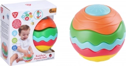 A felfűzhető golyóval való játék segít a színek és méretek megkülönböztetésében, türelemre tanít, és erősíti a szem–kéz koordinációt. A biztonságos, éles szélek nélküli kialakítás megfelel a 6 hónapos kortól ajánlott használatnak.