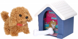 Aranyos kutyus kutyaházzal, amely örömet szerez minden gyermeknek. A csomag tartalmaz kutyaházat, kutyust és csontot, amelyek játékra ösztönöznek és fejlesztik a fantáziát. A kutyus 15 cm, a kutyaház 16 cm méretű. A játék 2× AA elemmel működik (nem része a csomagnak).