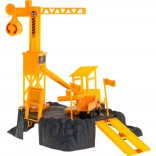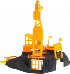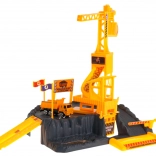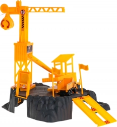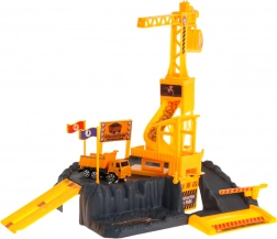 Ez a valósághű építőkészlet az építkezések világát hozza el a gyerekszobába. A tekerővel leengedhető teherrel ellátott forgódaru, a rámpa és a kiegészítők, mint a sorompó és a táblák támogatják a fantáziát, a logikus gondolkodást és a finommotorikát.