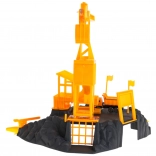 A készlet része egy kis építőjármű, amely a rámpán közlekedve anyagot szállíthat a daru alatti platformra.