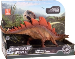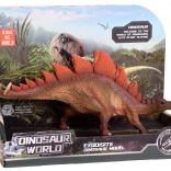 A Stegosaurus figura élethű részletekkel és textúrákkal készült, jellegzetes vörös hátlemezekkel.