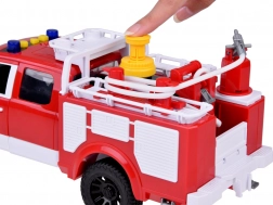 A gumitömlőnek köszönhetően, amelyet a jármű víztartályához lehet csatlakoztatni, a gyerekek valósághű tűzoltó játékot élvezhetnek.