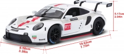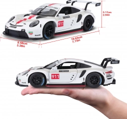 A modell realisztikus nyomatokkal és Porsche RSR grafikával van ellátva, melyek kiemelik versenyzési jellegét. A gumiversenygumik és az irányítható első kerekek hozzájárulnak a modell élethű megjelenéséhez és funkcionalitásához, így tökéletes kiegészítő minden autórajongó számára.