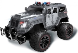 Indulj kalandos küldetésre a S.W.A.T. Police Pioneer RC autóval! Ez a fürge, 1:12 méretarányú modell kertben és járdán egyaránt szórakoztató, felépítésének köszönhetően a magasabb fűvel is megbirkózik. A világító fényhíd és az állítható üzemmódú első lámpák igazi rendőrségi akcióhangulatot adnak a vezetésnek.