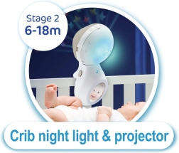 Kiságy fölé szerelhető forgó (0–5 hó), kiságyra rögzíthető lámpa (6–18 hó) és asztali projektor (18 hónaptól) egyetlen készülékben.