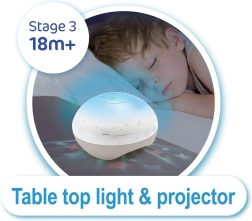 A projektor csillagokat vetít, és 6 dallamot valamint 4 természet-hangot játszik le, amelyek segítenek a babának gyorsabban elaludni.