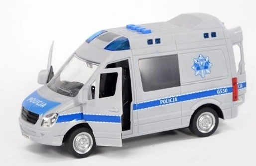 Városi autó – rendőrautóNyitható ajtókkal rendelkező jármű. 1:16 méretarányban készült, fény- és hangeffektekkel van felszerelve.