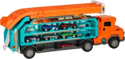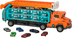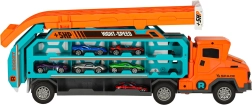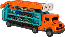 A kamion kényelmesen befogad és elszállít akár hat kisautót – ideális tároláshoz, rendszerezéshez és útközbeni játékhoz.
