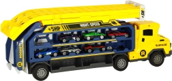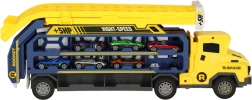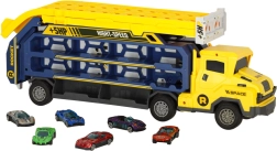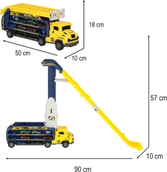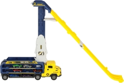 Ez a multifunkciós autószállító pillanatok alatt impozáns kétpályás versenypályává alakul. A gyerekek akár hat kisautót is szállíthatnak, majd párhuzamos sávokon engedhetik őket izgalmas futamokra. A vonzó sárga–kék kivitel játékra csábít, és fejleszti a finommotorikát és a kéz–szem koordinációt.