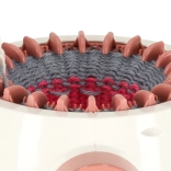 A 22 tűnek köszönhetően a gép körkötést és síkkötést is végez. A kompakt 20 × 17 cm-es méret és a 12,5 cm belső átmérő gyors projektekhez ideális, mint például sapkák, lábszármelegítők, sálak vagy gyerek kiegészítők. A csomag része továbbá 2 gombolyag fonal, egy tű és egy horgolóhorog a könnyű eldolgozáshoz és befejezéshez.
