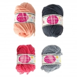 A csomag 4 gombolyag fonalat, tűkészletet és horgot tartalmaz a szélek könnyű befejezéséhez és az összevarráshoz.