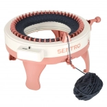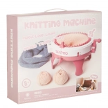 A készlet része 4 színes gombolyag fonal (sötétszürke, világosszürke, rózsaszín, bézs), különböző méretű tűk és egy horgoló tű a könnyű befejezéshez és összevarráshoz. A stabil lábak és a tapadókorongok segítenek a gépet munka közben szilárdan a helyén tartani.