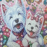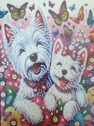 Ez a gyémántfestő szett kezdőknek és haladóknak egyaránt ideális. Az előre nyomtatott „Vidám kutyusok” motívumú vászon a merev keretnek köszönhetően jól tartja a formáját, a kövecskék gyönyörűen verik vissza a fényt, a végeredmény pedig örömet szerez neked és szeretteidnek. Csak kövesd a legendát, és ragaszd fel a kövecskéket egyesével – egyszerű, megnyugtató és szórakoztató.