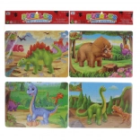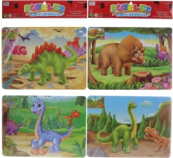 Dínó puzzle, 49 darabbal. A csomag 2 puzzle-t tartalmaz – az egyik oldalon egy összeállítható puzzle, a másik oldalon ugyanaz a kép fekete-fehérben, amelyet ki lehet színezni. A csomag méretei: 48 × 25 × 0,5 cm.