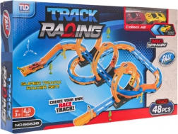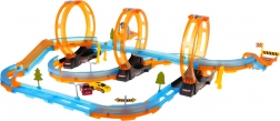 Élvezze az izgalmas versenyakciót a nagy versenypálya 48 darabból álló változatával. A szett tartalmaz három függőleges hurkot és éles kanyarokat, amelyek biztosítják, hogy az autók biztonságosan maradjanak a pályán a védőkorlátnak köszönhetően. A motor nélküli kisautók szórakozást garantálnak.