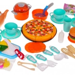 Nem hiányzik a ventilátorpanel effektekkel, telefon hangokkal (csengés, állathangok, dal), valamint számos polc az élelmiszerek és eszközök tárolására. A készlet bőségesen felszerelt – lábasoktól, serpenyőktől, eszközöktől és edényektől kezdve egészen a pizzáig, tépőzáras zöldségekig és további élelmiszerekig. A mókát fokozza az elemes kukta, amely buborékokat és főzési hangokat kelt; három élelmiszer (hal, rák/rákféle, hússzelet) benne színt vált.