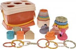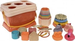 A gyermekszett formákkal és szortírozóval kiváló oktatási szett a 6 hónapos kortól. Fejleszti a gyermeki fantáziát, és segít megismerni a színeket és formákat. A szett minden eleme úgy van tervezve, hogy élénk színeivel és érdekes formáival felkeltse a gyermekek figyelmét, és ösztönözze őket a játékra.