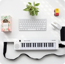 Fejlessze a gyerekek kreativitását ezzel a kompakt elektronikus hangszerrel, amely bármikor, bárhol játékra kész. A beépített hangszóró, a mellékelt mikrofon és a vállpánt a billentyűzetet stílusos „keytarrá” varázsolja a kis zenészek számára. A kezelés intuitív, és ösztönöz a hangok és ritmusok felfedezésére.