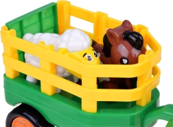 A sárga–zöld utánfutó kinyitható a könnyű be- és kirakodáshoz. A gyerekek szállíthatják a lovat és a bárányt, és saját farmtörténeteket alkothatnak.