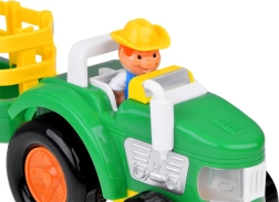 Változtasd a szobát mini farmmá a színes traktorral és a levehető utánfutóval. A masszív műanyag kivitel, a könnyű fogás és az interaktív, hang- és fényfunkciók támogatják a fantáziát, a történetmesélést és a finommotorika fejlesztését.