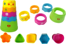 - Világító formabedobó, golyópálya, fogaskerekek, forgó csörgő, 5 szintes piramis