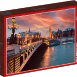 Fedezze fel Párizs varázsát ezzel a minőségi, 1000 darabos kirakóval, amely az ikonikus Pont Alexandre III hidat ábrázolja. Élvezze a pihentető kirakást, és alkosson otthon elegáns dekorációt körülbelül 69 × 47,8 cm méretben. Ideális Párizs szerelmeseinek, a realista motívumok kedvelőinek és mindenkinek, aki kikapcsolódást nyújtó szórakozást keres szép végeredménnyel.