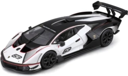 A Bburago Lamborghini Essenza SCV12 modellje csúcskategóriás részletességet és minőséget kínál. A die-cast fém karosszériának és a gondosan megformált aerodinamikai elemeknek köszönhetően bármely polcon vagy gyűjteményben kiemelkedik. A fehér versenykivitel kontrasztos elemekkel és a 63-as számmal hangsúlyozza az autentikus versenykaraktert.