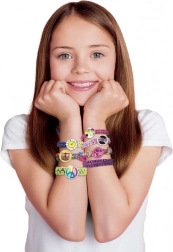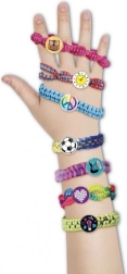 A gazdag csomag tartalmának köszönhetően – fonalak, összekötő gombok és matricák – egy teljes, színes karkötőkollekciót alkothatsz.