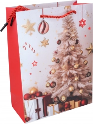 Ez az L méretű karácsonyi ajándéktáska tökéletes választás közepes és nagyobb ajándékokhoz. A strapabíró anyagnak és a kényelmes füleknek köszönhetően a nehezebb csomagokat is könnyedén hordozhatja. Az elegáns karácsonyi motívumok fokozzák az ünnepi hangulatot és reprezentatív megjelenést kölcsönöznek az ajándékoknak.