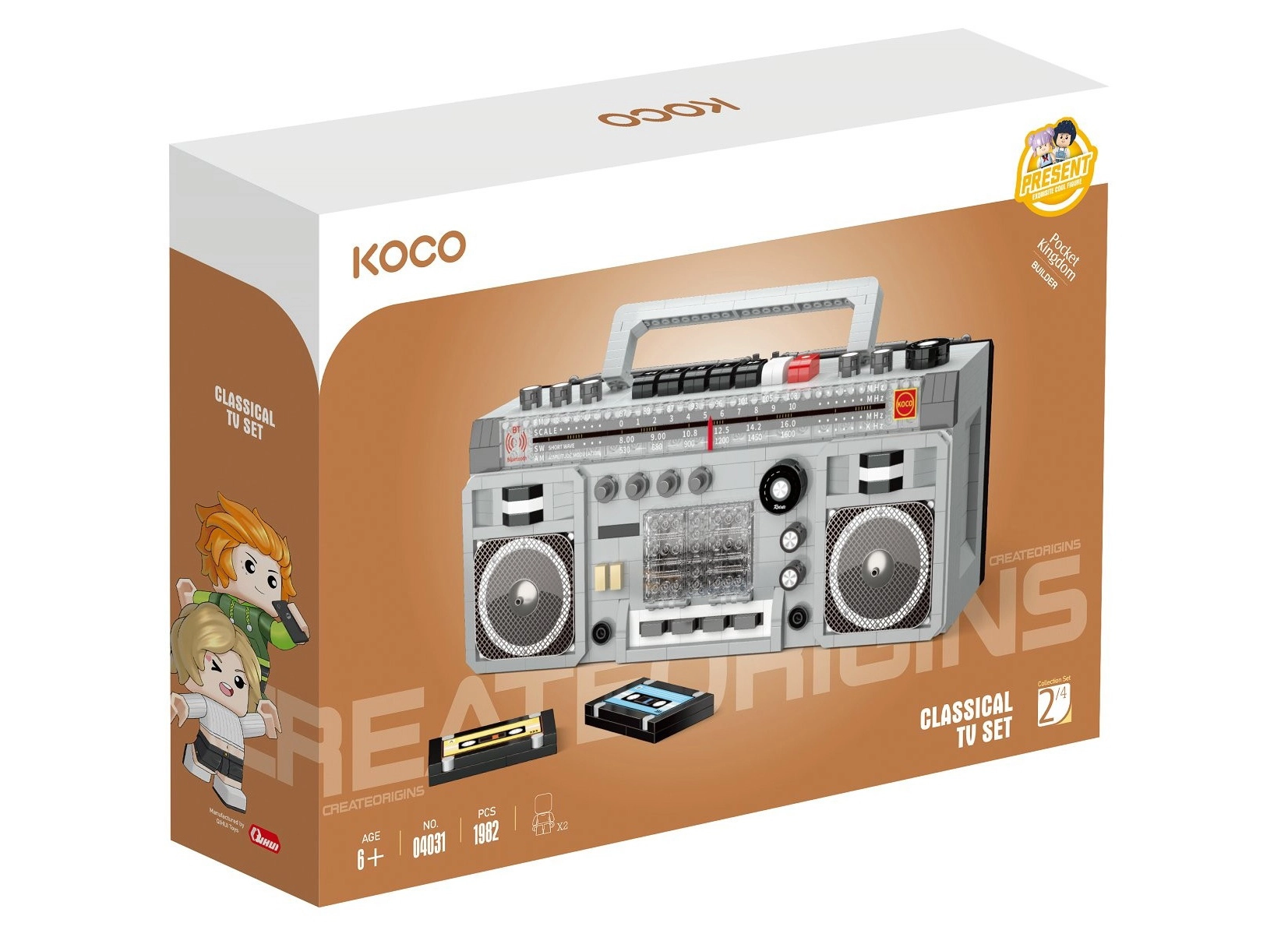 Térjen vissza a retró világába a KOCO márka élethű kazettás lejátszó építőkészletével. A szett 1982 darabot, 2 figurát és képes útmutatót tartalmaz az egyszerű összeszereléshez. A 18,5 × 7,5 × 14,5 cm kompakt méret remek gyűjtői darabbá és stílusos dekorációvá teszi.