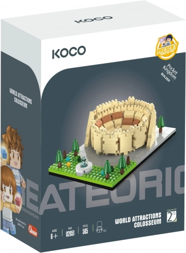 KOCO építőkészlet Kolosszeum 505 darabbal és 2 figurával. Kompakt modell 12 × 8 × 3,6 cm, képes útmutatóval. Remek ajándék a történelem rajongóinak.