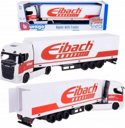 Realista kidolgozású, 1:43 méretarányú fém teherautó modell, amely részletesen ábrázolja a Scania 770 S fülkét és a hosszú pótkocsit. A BBURAGO márka minőségi fém kivitele, finom részletei és a fehér pótkocsin látható, vonzó Eibach dizájn emelik ki. Remek választás gyűjtőknek és stílusos ajándékként is.