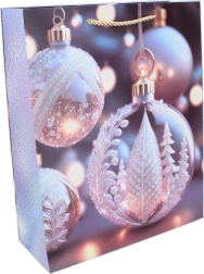 Stílusos S méretű ajándéktáska 18 × 23 × 10 cm-es méretben, szép karácsonyi mintával. Ideális kisebb ajándékokhoz, masszív kivitel és praktikus fül a könnyű hordozáshoz. Elérhető 4 féle dizájnban.