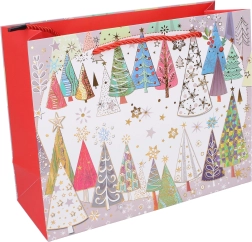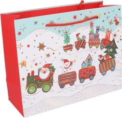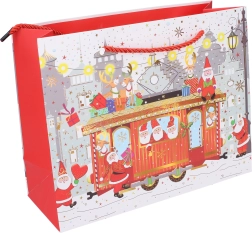 Ez a karácsonyi ajándéktáska remek választás az elegáns és gyors ajándékcsomagoláshoz. A 24,5 × 19,5 × 9,5 cm-es méret praktikussá teszi kisebb tárgyakhoz, gyertyákhoz, kiegészítőkhöz vagy kozmetikai szettekhez. Négy különböző ünnepi minta ad egyedi megjelenést minden ajándéknak.