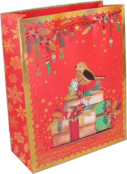 Ez a közepes méretű karácsonyi ajándéktáska ideális könyvekhez, kozmetikumokhoz, textíliákhoz és kisebb ajándékcsomagokhoz. Az erős papírnak és a kényelmes füleknek köszönhetően az ajándékok könnyen hordozhatók, miközben az elegáns szezonális dizájn azonnal ünnepi hangulatot teremt.